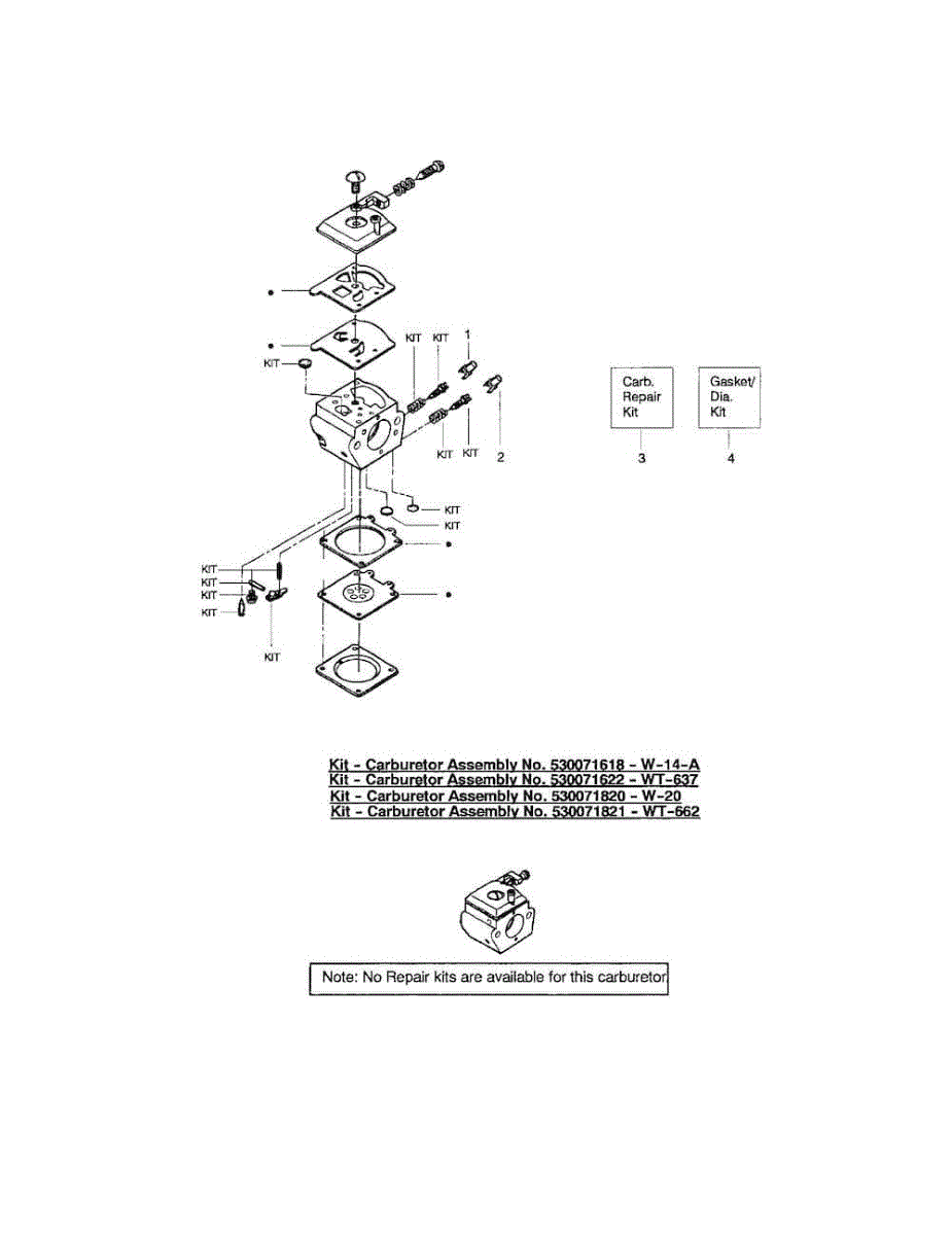 Carburetor gasket kit for chainsaws, trimmers, blowers, and edgers. Replace when experiencing fuel leaks or poor engine performance. Verify fit.