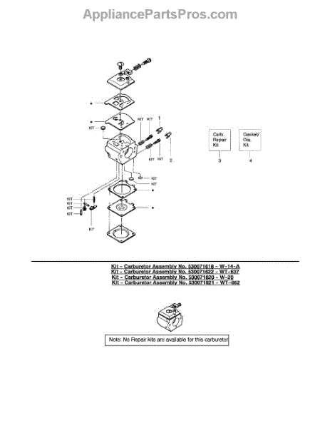 Carburetor gasket kit for chainsaws, trimmers, blowers, and edgers. Replace when experiencing fuel leaks or poor engine performance. Verify fit.