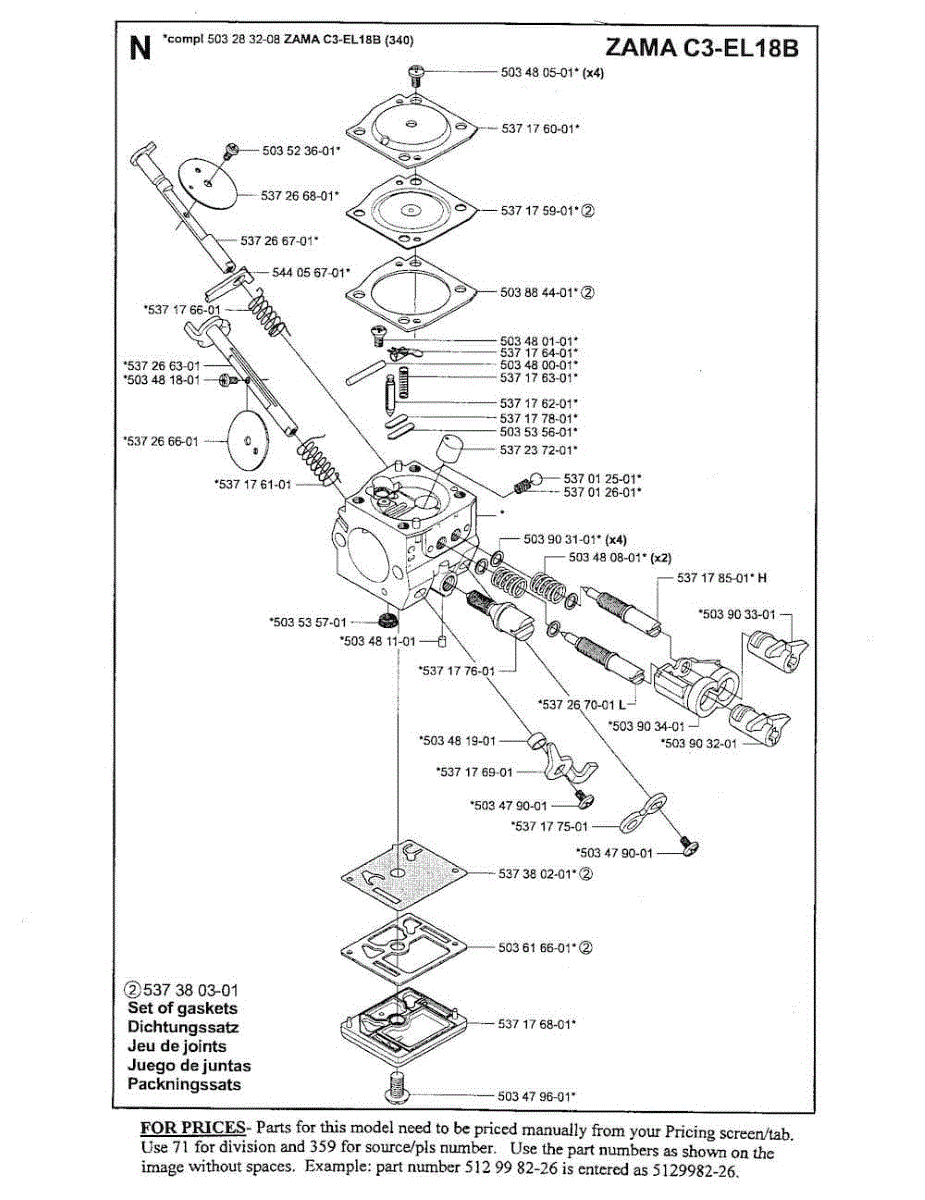 Parts for Husqvarna 340: Carburetor Zama C3-El18b Parts