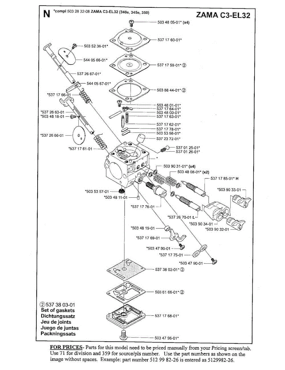 Parts for Husqvarna 340: Carburetor Zama C3-El32 Parts