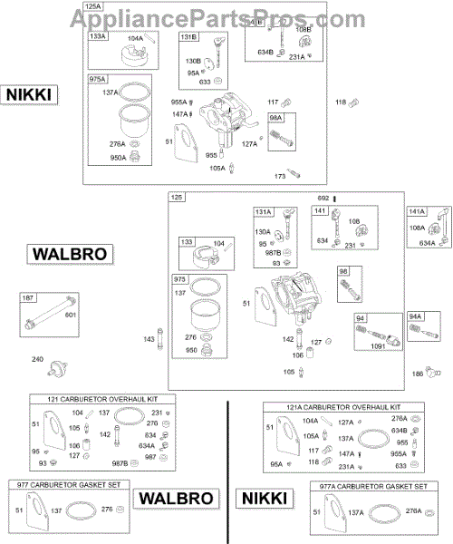 Parts for Briggs & Stratton 28T707-1121-E1: Carburetors, Gaskets Parts