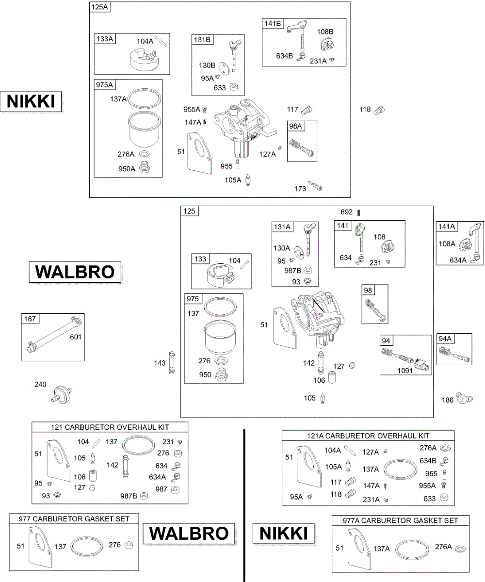 Parts for Briggs & Stratton 28T707-1154-E1: Carburetors, Gaskets Parts