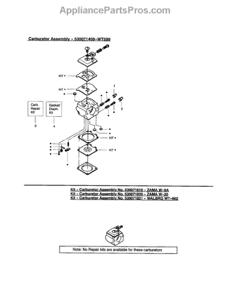 This carburetor repair kit is made for use in chainsaws by several manufacturers. It has each of the needed components to get a chainsaw back into working order if the carburetor is damaged or no longer working. The carburetor is the component in a chainsaw that controls how fuel and air mix together before being ignited in the cylinder to keep the engine running. One of the signs that the carburetor may be having problems is if the chainsaw doesn't want to start its engine even if the fuel tank is completely full. Testing the carburetor can be done by taking out the air filter and adding a small amount of fuel to the carburetor. Pull the starter rope and watch to see if the engine turns on for a few seconds before stopping. If this is the case, the carburetor will need to be cleaned, rebuilt, or replaced. This individual carburetor repair kit is designed to work with chainsaws by Poulan, Poulan Pro, Craftsman, and Husqvarna. It is a genuine OEM product that is provided directly by the manufacturer. A few basic tools and work gloves may be needed to use the repair kit.