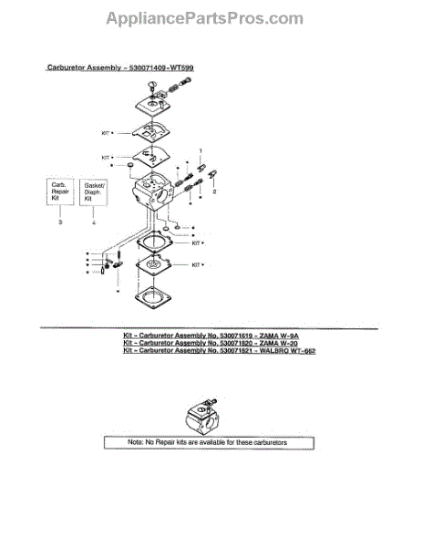 This carburetor repair kit is made for use in chainsaws by several manufacturers. It has each of the needed components to get a chainsaw back into working order if the carburetor is damaged or no longer working. The carburetor is the component in a chainsaw that controls how fuel and air mix together before being ignited in the cylinder to keep the engine running. One of the signs that the carburetor may be having problems is if the chainsaw doesn't want to start its engine even if the fuel tank is completely full. Testing the carburetor can be done by taking out the air filter and adding a small amount of fuel to the carburetor. Pull the starter rope and watch to see if the engine turns on for a few seconds before stopping. If this is the case, the carburetor will need to be cleaned, rebuilt, or replaced. This individual carburetor repair kit is designed to work with chainsaws by Poulan, Poulan Pro, Craftsman, and Husqvarna. It is a genuine OEM product that is provided directly by the manufacturer. A few basic tools and work gloves may be needed to use the repair kit.