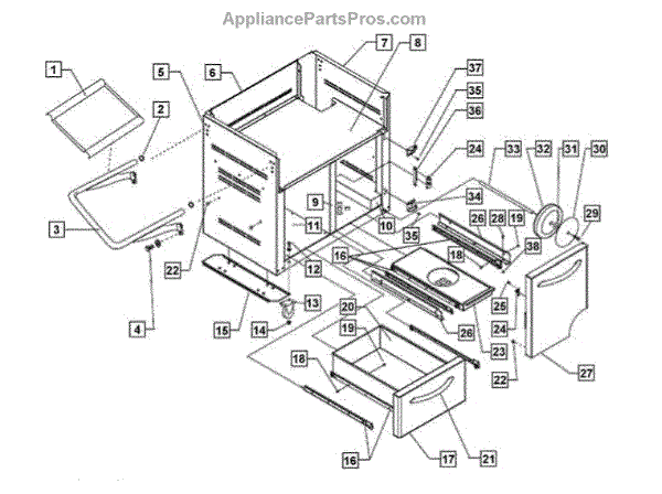 This back cart is the rear support frame that restores the cabinet structure and stability of the appliance. It provides a secure mounting point for panels and wheels so the unit sits level and moves safely. What it does: