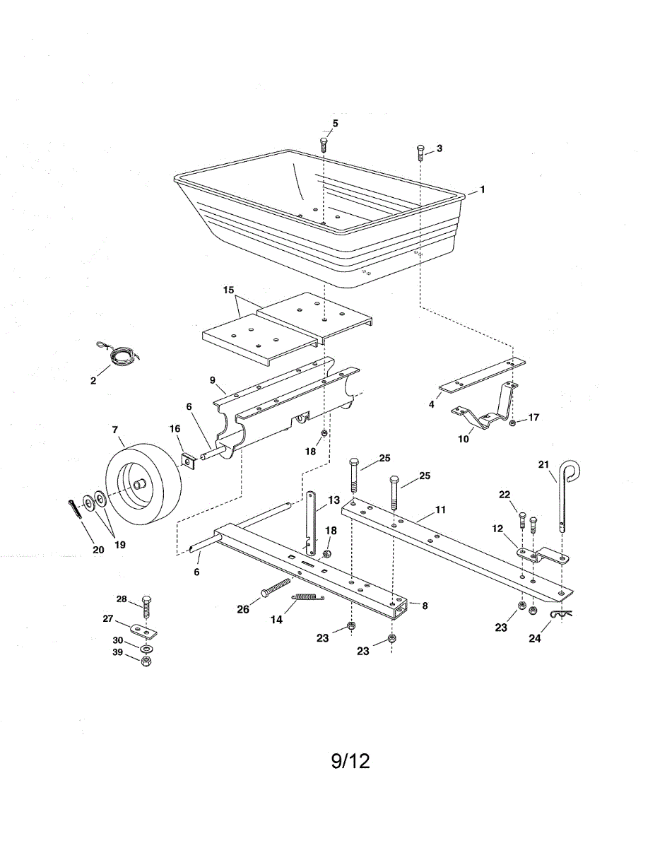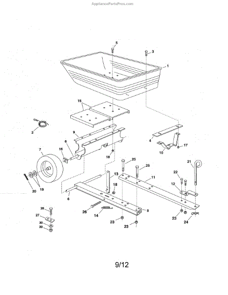 Parts for Craftsman 486247072: Cart Tray / Wheel / Front Tongue Parts