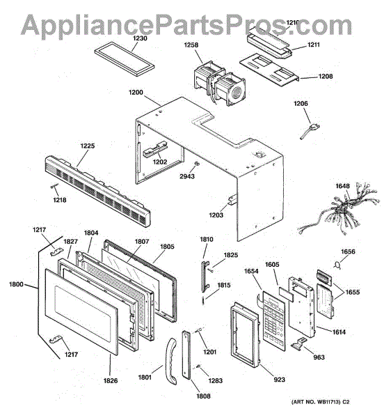Includes door handle. White door with clear screen, with GE logo on the outer frame.