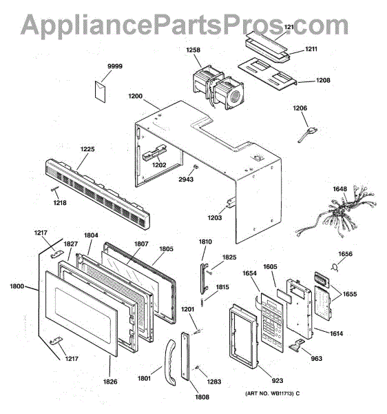 Wire harness assembly for microwaves. Connects internal components and controls. Replace if wires are frayed, connectors are damaged, or harness is broken.