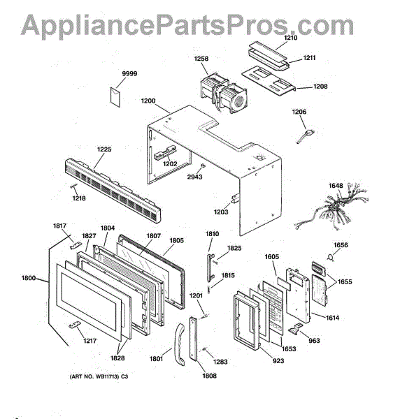 Parts for Ge JVM1350SY02: 01 - Case, Door & Controls Parts