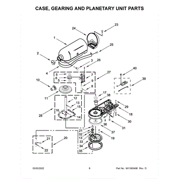 Parts for Kitchenaid 5KSM195PSAPT0: Case, Gearing And Planetary Unit Parts