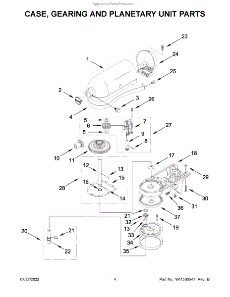 Parts for Kitchenaid KSM97SL0: Case, Gearing And Planetary Unit Parts