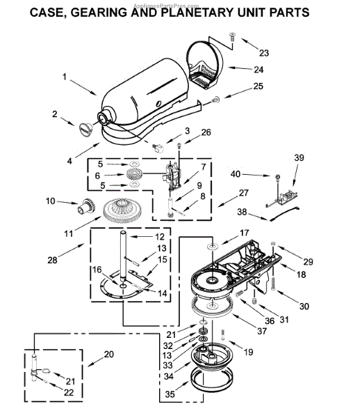Parts for Kitchenaid 5KSM150PSRLR0: Case, Gearing And Planetary Unit Parts