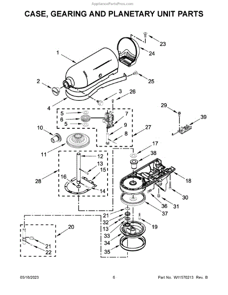 Parts for Kitchenaid 5KSM195PSBHI0: Case, Gearing And Planetary Unit Parts