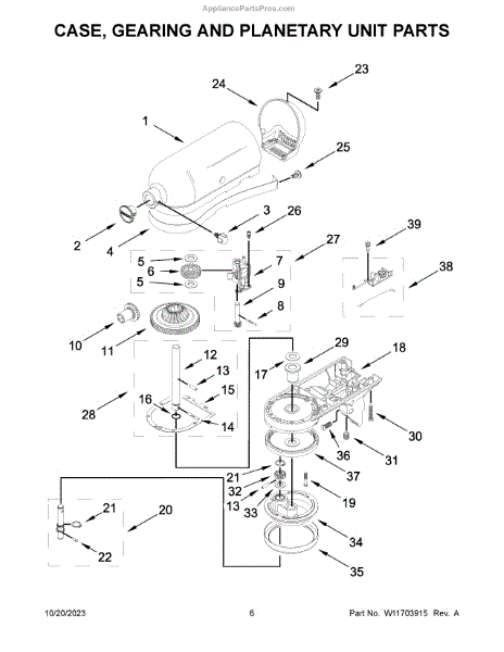 Parts for Kitchenaid 5KSM195PSEOA5: Case, Gearing And Planetary Unit Parts