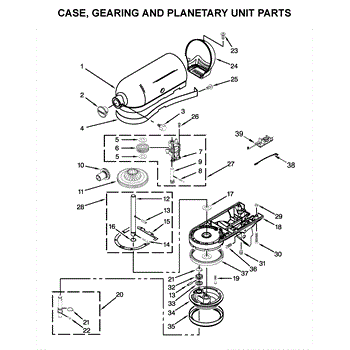 Parts for Kitchenaid 7K45SSZOB0: Case, Gearing And Planetary Unit Parts