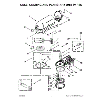 The Washer is an OEM replacement part for Kitchenaid stand mixers. This washer serves a dual purpose as both a spacer and a cushion, positioned on the Vertical Center Shaft beneath the Bevel Pinion and Center Gear and above the planetary gear assembly. Replacement of this washer should be considered if it becomes torn, damaged, or lost to maintain the mixer's performance and prevent potential damage to other components. It is recommended that two washers be used in every mixer to ensure optimal performance and stability of the internal gearing system. Symptoms of a washer needing replacement include: