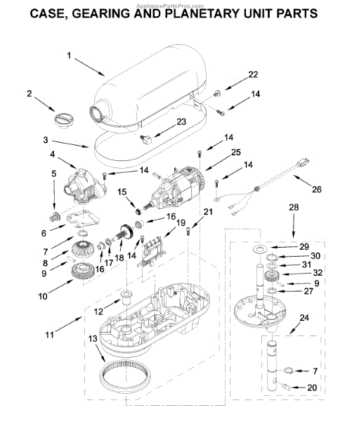 Parts for Kitchenaid KL26M2XSL5: Case, Gearing And Planetary Unit Parts