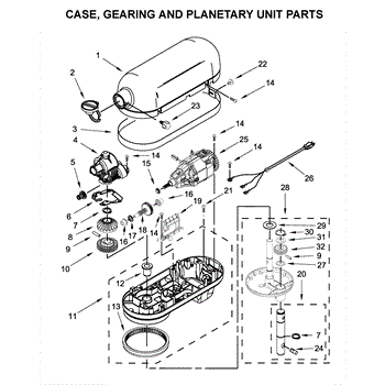 Parts for Kitchenaid KP26M1XQ3ER5: Case, Gearing And Planetary Unit Parts