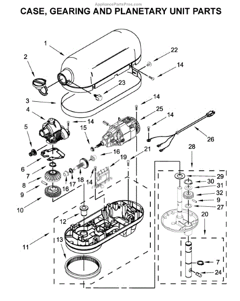 Parts for Kitchenaid KP26M1XQ3TZ5: Case, Gearing And Planetary Unit Parts
