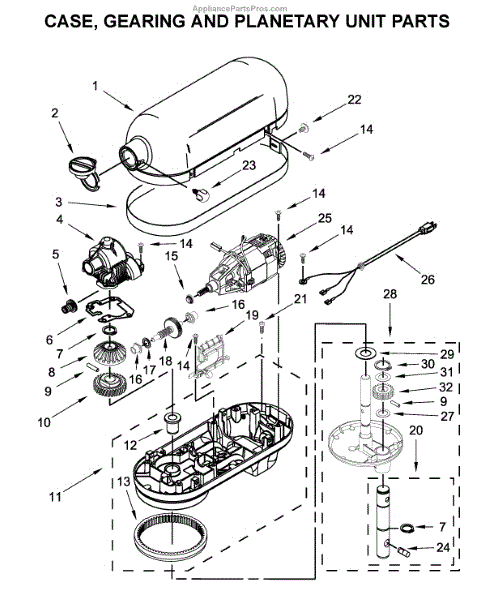 Parts for Kitchenaid KP26M1XTZ5: Case, Gearing And Planetary Unit Parts