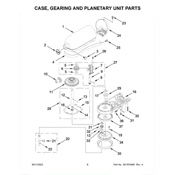 The Washer is an OEM replacement part for Kitchenaid stand mixers. This washer serves a dual purpose as both a spacer and a cushion, positioned on the Vertical Center Shaft beneath the Bevel Pinion and Center Gear and above the planetary gear assembly. Replacement of this washer should be considered if it becomes torn, damaged, or lost to maintain the mixer's performance and prevent potential damage to other components. It is recommended that two washers be used in every mixer to ensure optimal performance and stability of the internal gearing system. Symptoms of a washer needing replacement include: