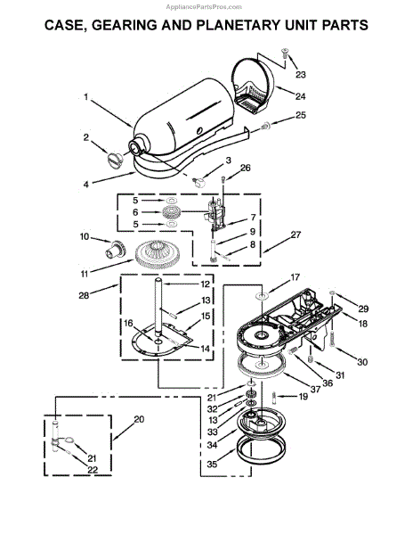 Parts for Kitchenaid KSM153PSQTG0: Case, Gearing And Planetary Unit Parts