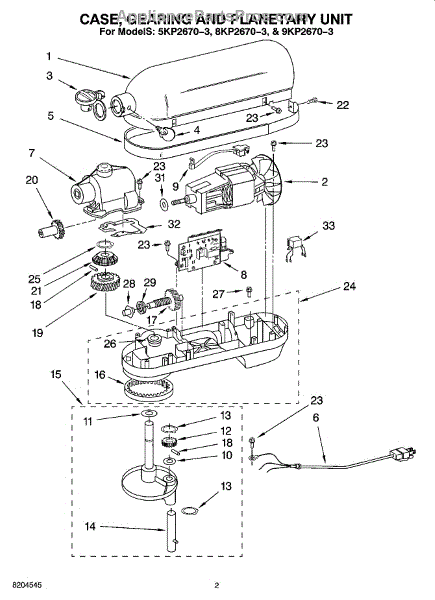 This lower gearcase housing encloses and supports the planetary and lower gear train in a stand mixer. Replacing a damaged housing restores alignment and helps contain lubrication for quieter, consistent mixing performance.