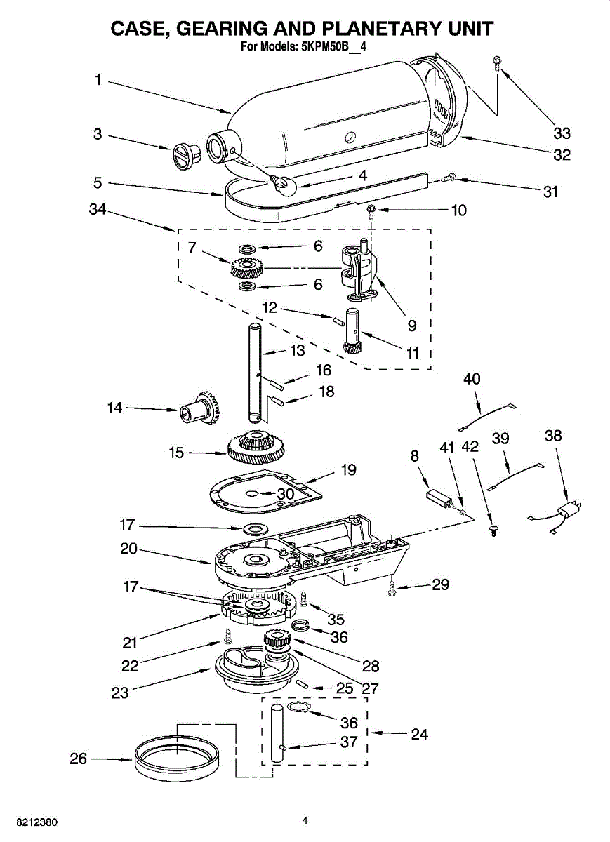Seals the planetary gear case to prevent grease leaks. Replace if oil appears around the outer case or after opening the mixer for repairs. Confirm fit.