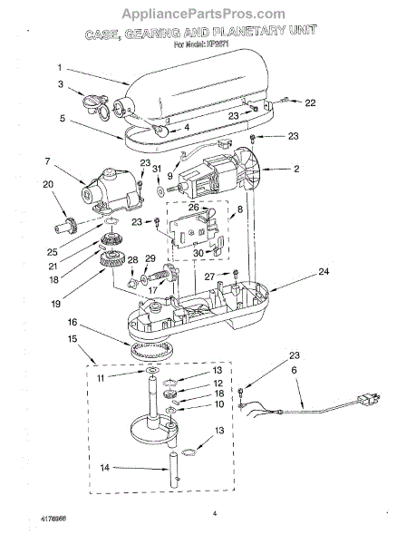 This lower gearcase housing encloses and supports the planetary and lower gear train in a stand mixer. Replacing a damaged housing restores alignment and helps contain lubrication for quieter, consistent mixing performance.