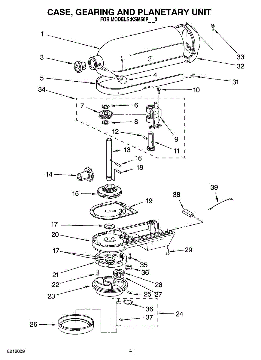 Seals the planetary gear case to prevent grease leaks. Replace if oil appears around the outer case or after opening the mixer for repairs. Confirm fit.