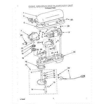 The Planetary Assembly is an OEM replacement part for Kitchenaid stand mixers. It is the central component that transmits rotational power from the motor to the mixing attachment through an intricate system of gears. Causes of a bad planetary assembly can include worn gears that no longer mesh properly, broken or missing gear teeth from overloading, or a failed bearing. Symptoms of a bad planetary assembly include: