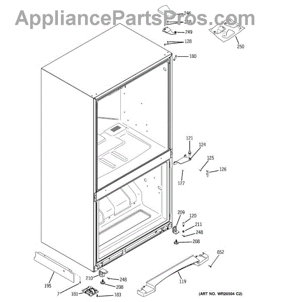 Secures the door hinge pin and keeps the refrigerator door aligned. Replace if cracked, broken, or missing to prevent door sag and uneven gaps.