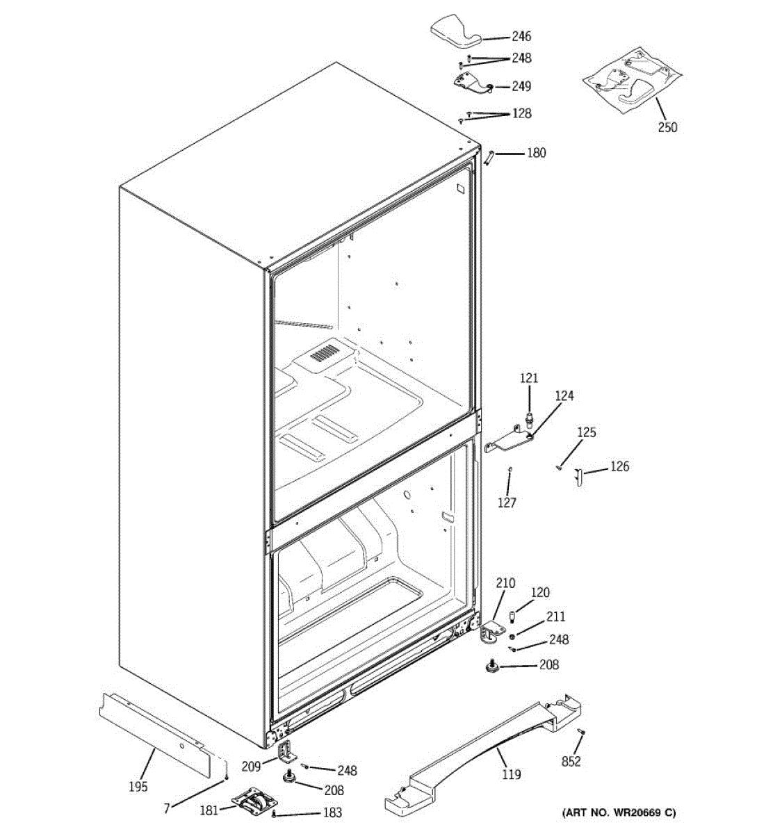 Secures the door hinge pin and keeps the refrigerator door aligned. Replace if cracked, broken, or missing to prevent door sag and uneven gaps.