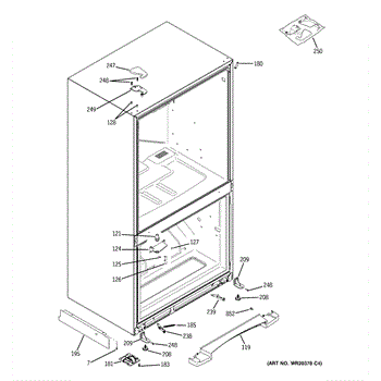 The Door Closure Spring is an OEM replacement part for GE refrigerators. It provides balanced tension to assist the door hinges and latch mechanism in securely closing the refrigerator door. The spring helps the door shut fully while preventing it from slamming closed abruptly.