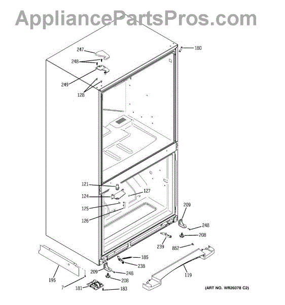 The Door Closure Spring is an OEM replacement part for GE refrigerators. It provides balanced tension to assist the door hinges and latch mechanism in securely closing the refrigerator door. The spring helps the door shut fully while preventing it from slamming closed abruptly.