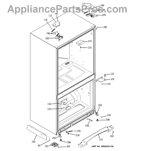Top door hinge closure assembly for your refrigerator. Mounts at the top of the door to secure it to the cabinet. Replace if cracked, broken, or worn.