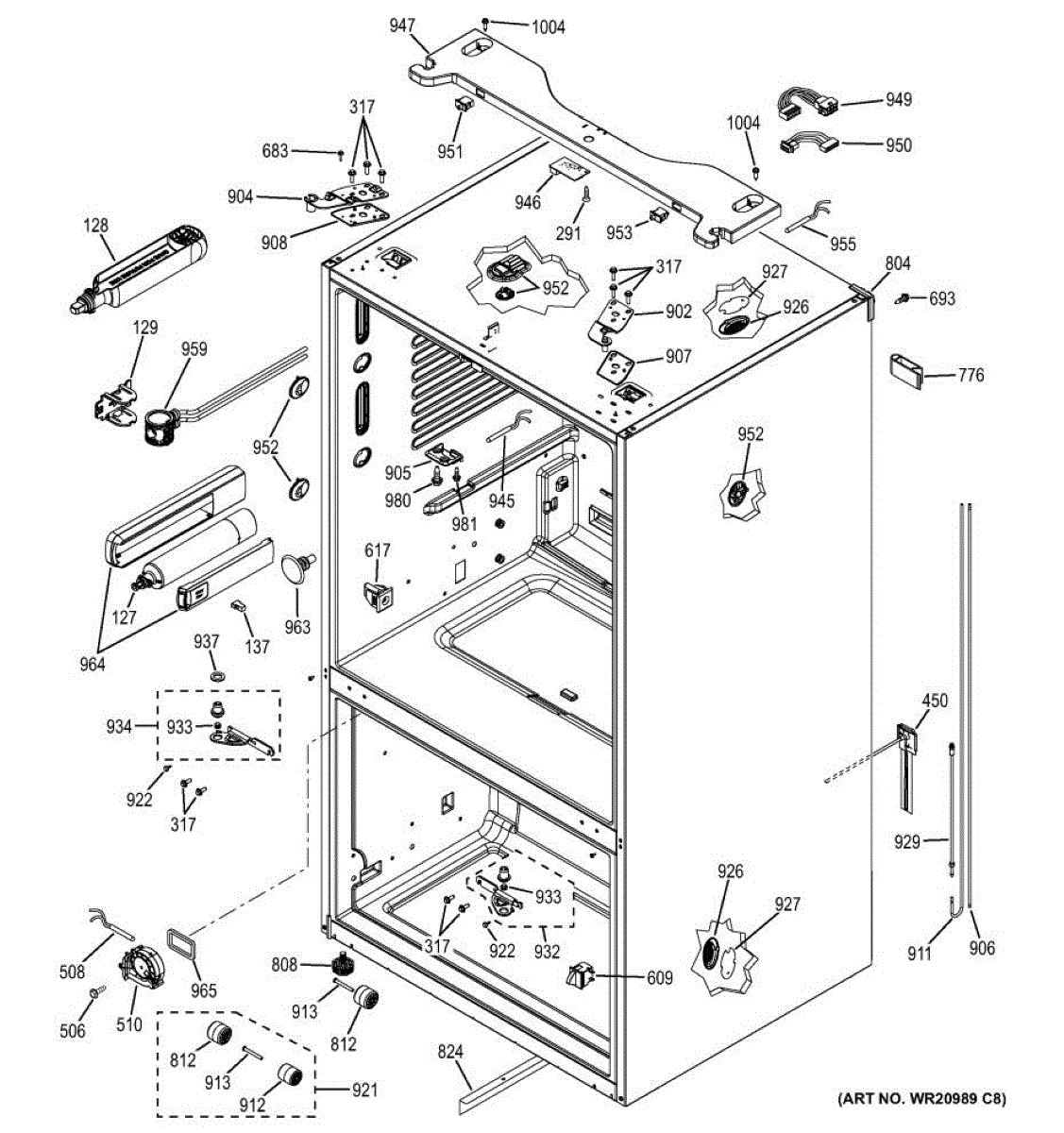 Case back tube for bottom-mount refrigerators. Installs behind the refrigerator case. Replace if cracked, damaged, or leaking to restore proper function.