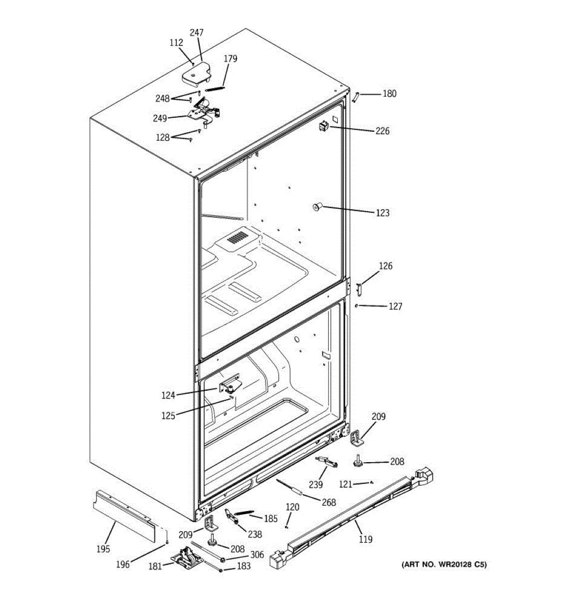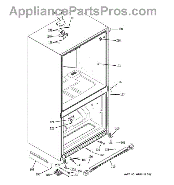 Door hinge closure assembly for your refrigerator. Installs on the door frame to secure the hinge mechanism. Replace if cracked, broken, or worn.