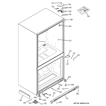 • Depress locking tabs and slide the old support out; snap the new one into the cabinet slot