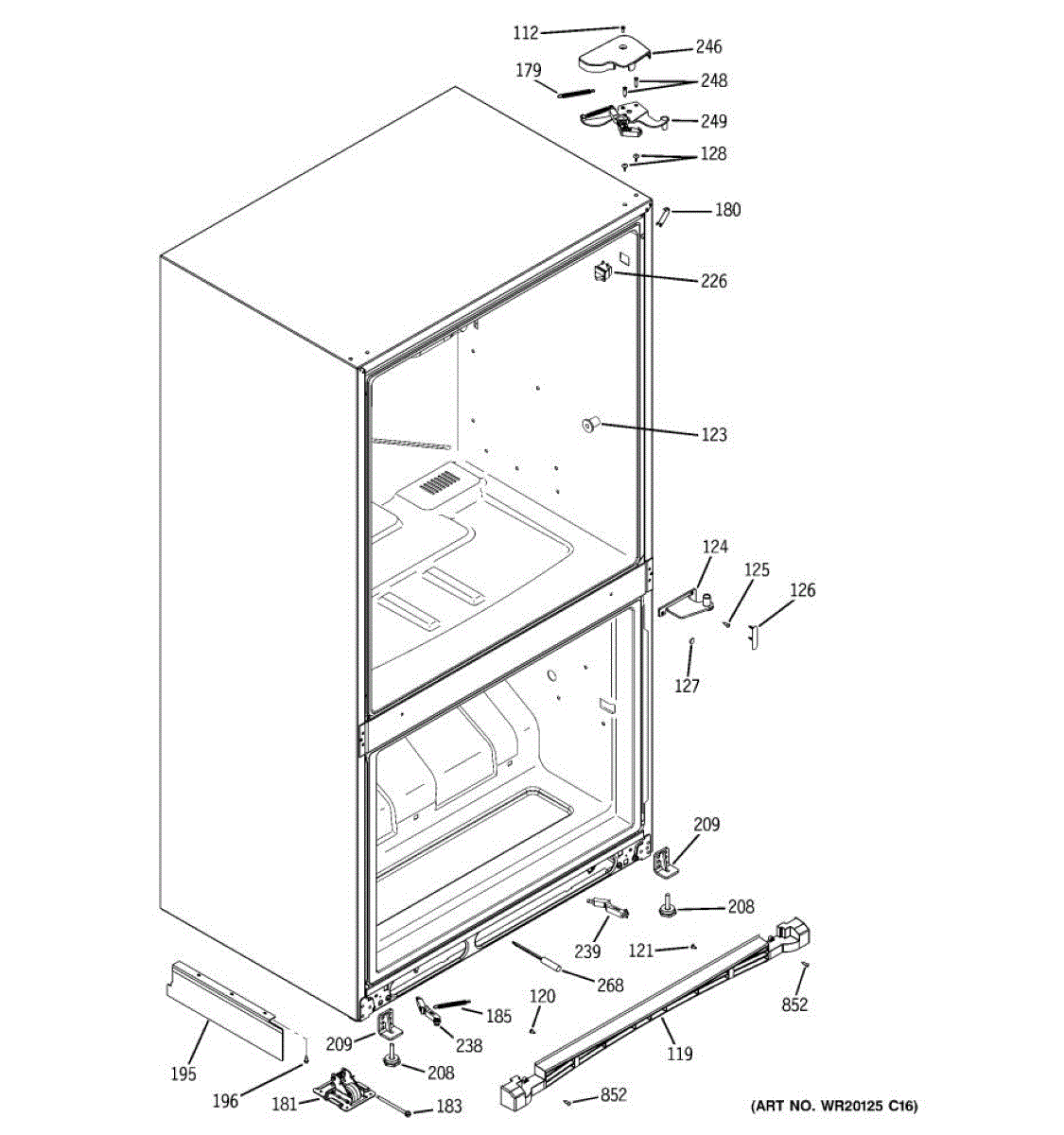 Leg bracket assembly for refrigerators. Mounts to the base to secure and support adjustable legs. Replace if cracked, bent, or broken to restore stability.