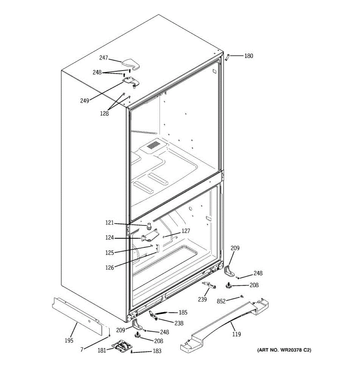 Leg bracket assembly that mounts to the bottom of your refrigerator to support and secure the leveling legs. Replace if cracked, broken, or missing.