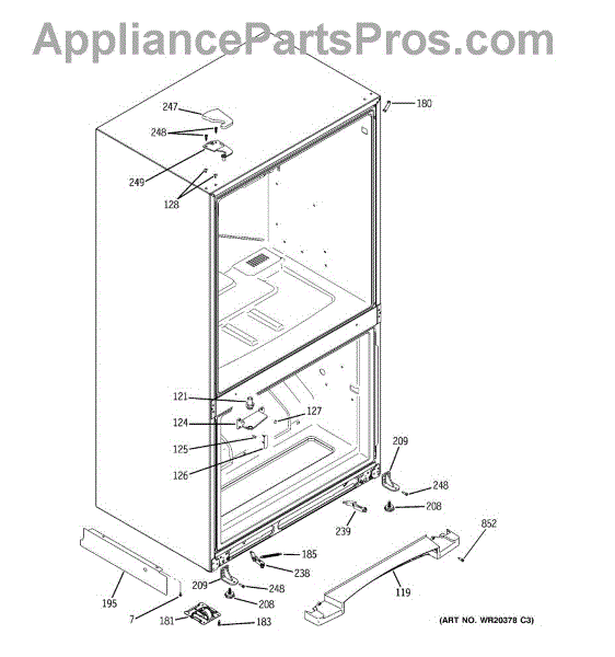 This hinge and pin stop assembly replaces the door hinge stop to help the refrigerator door open and close smoothly and stay properly aligned. Restores correct door movement and reduces sagging or misalignment. What it does: