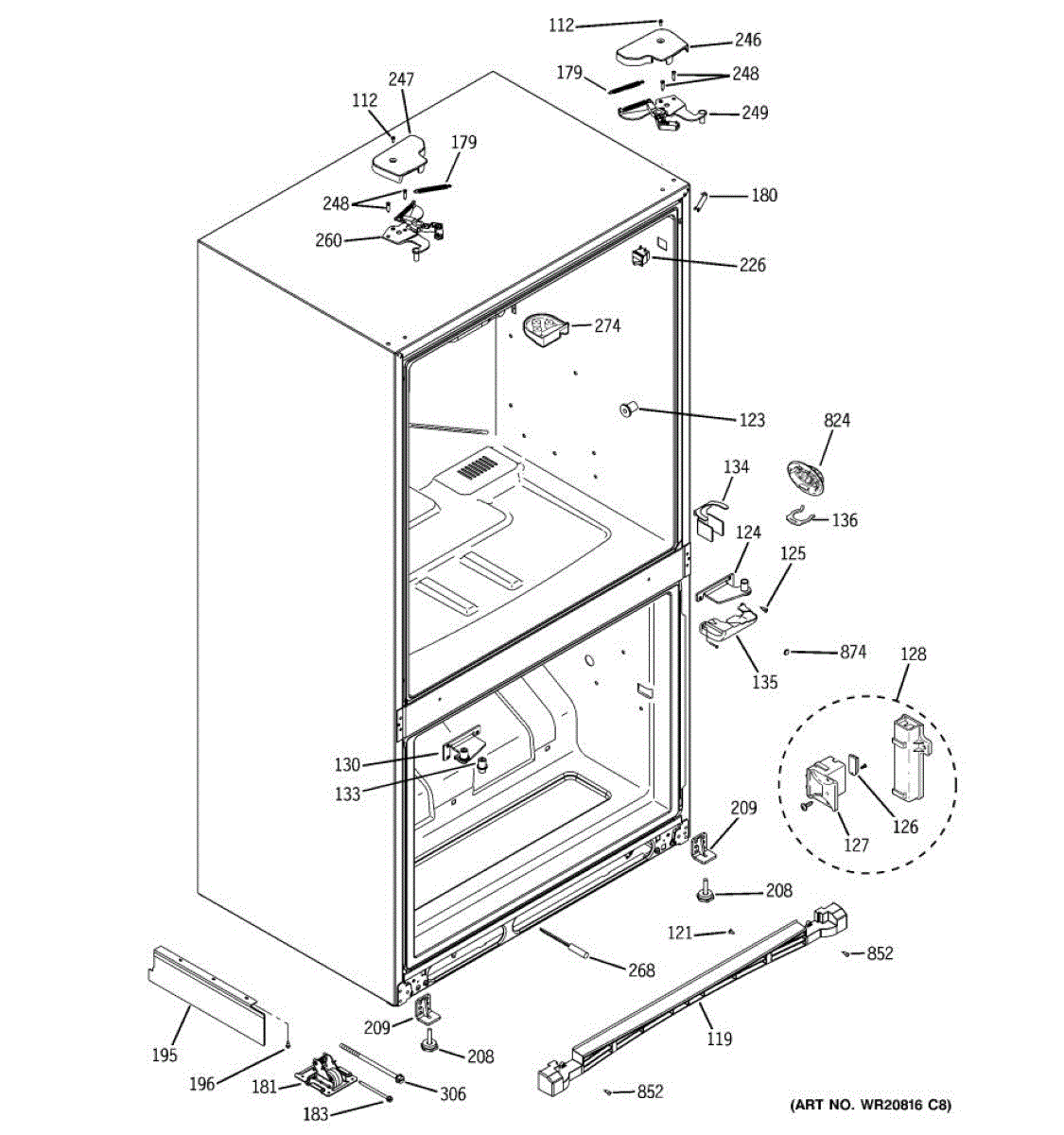 Replace the corner cap cover on your refrigerator. This plastic cover protects and finishes the corner edge. Order a new one if cracked or missing.