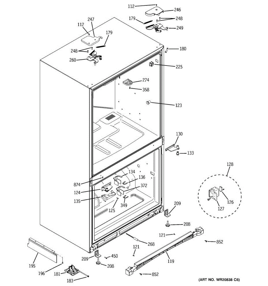 Replace the corner cap cover on your refrigerator. This plastic cover protects and finishes the corner edge. Order a new one if cracked or missing.