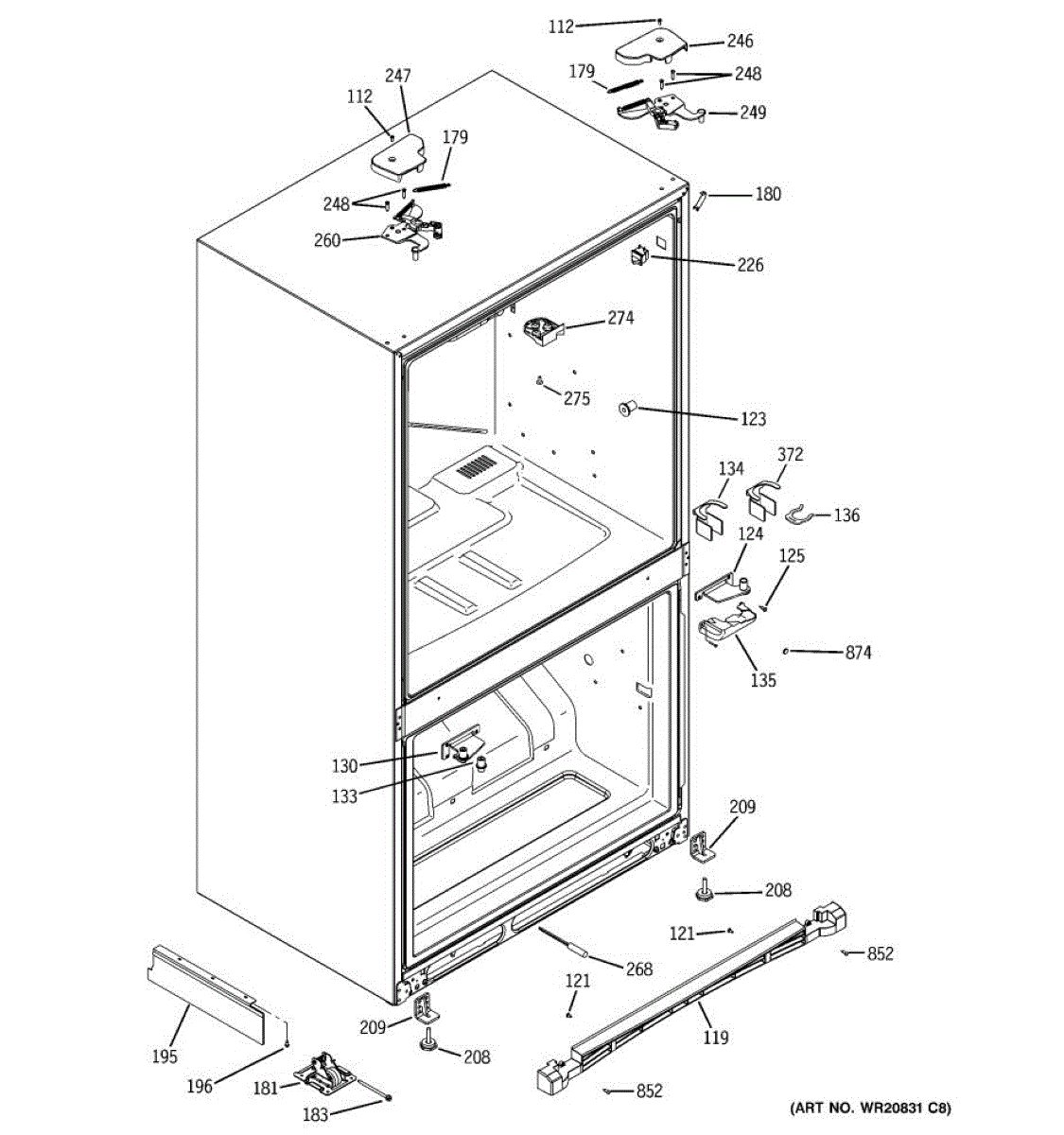 Replaces the center hinge assembly on French door refrigerators. Mounts between upper and lower doors to support door alignment and operation.