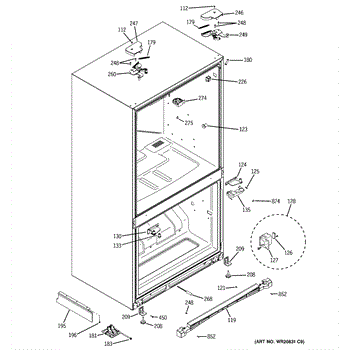 Door hinge closure assembly for refrigerators. Secures the door to the cabinet frame. Replace if the assembly is cracked, broken, or missing components.