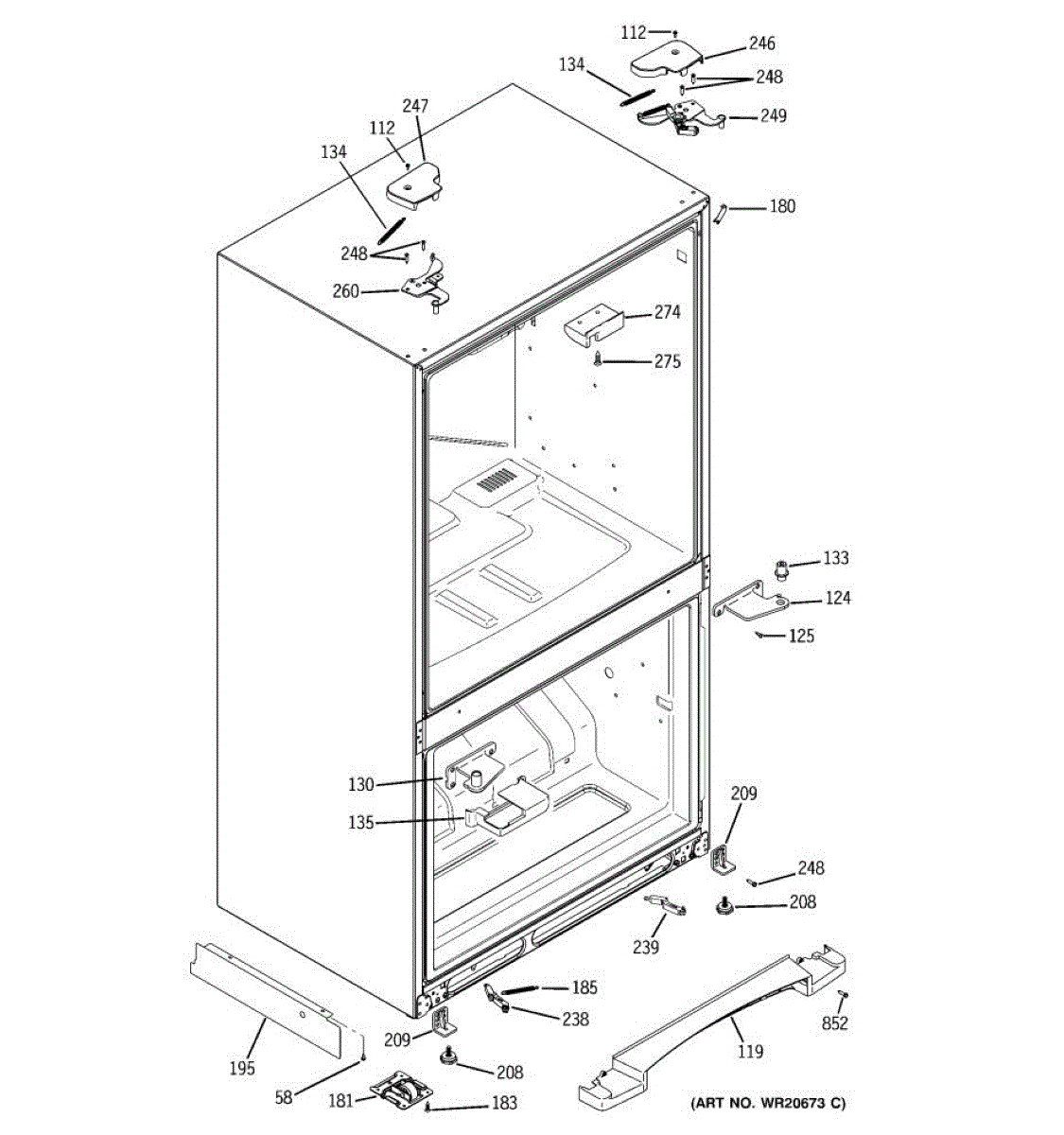 Leg bracket assembly that mounts to the bottom of your refrigerator to support and secure the leveling legs. Replace if cracked, broken, or missing.