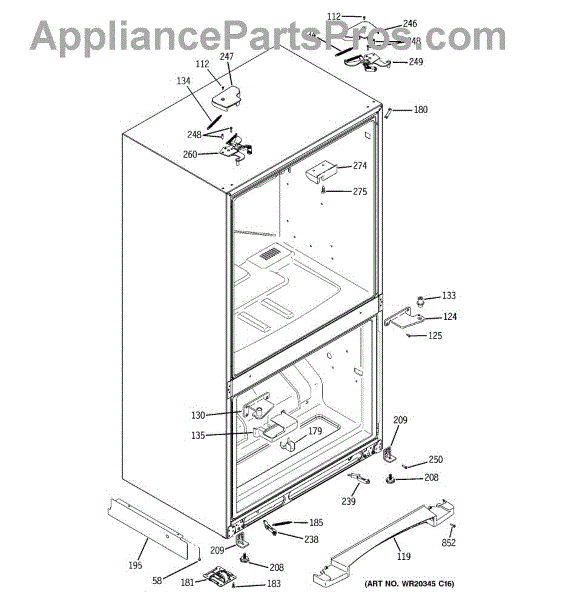 The Door Closure Spring is an OEM replacement part for GE refrigerators. It provides balanced tension to assist the door hinges and latch mechanism in securely closing the refrigerator door. The spring helps the door shut fully while preventing it from slamming closed abruptly.