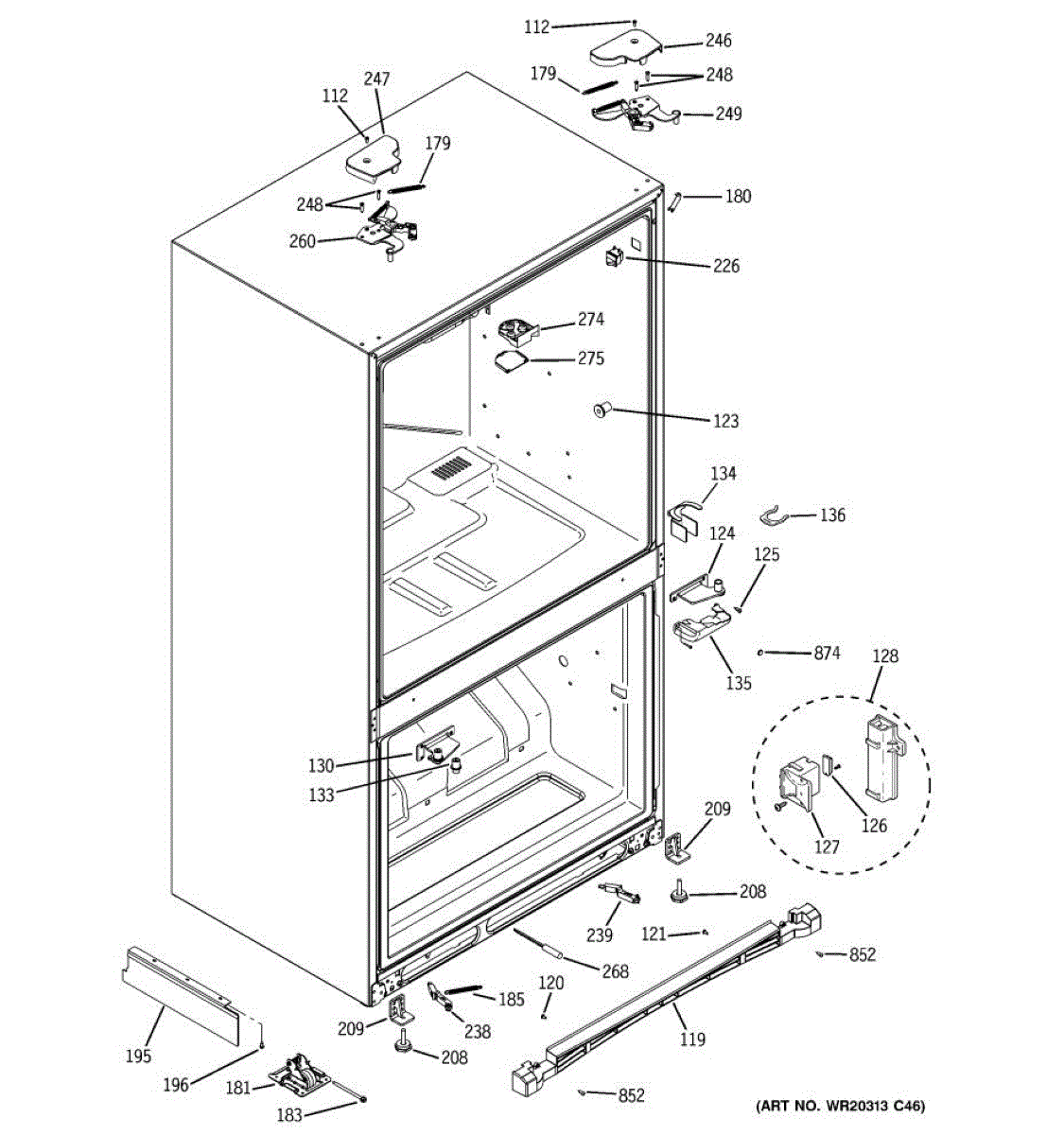 Replace the corner cap cover on your refrigerator. This plastic cover protects and finishes the corner edge. Order a new one if cracked or missing.