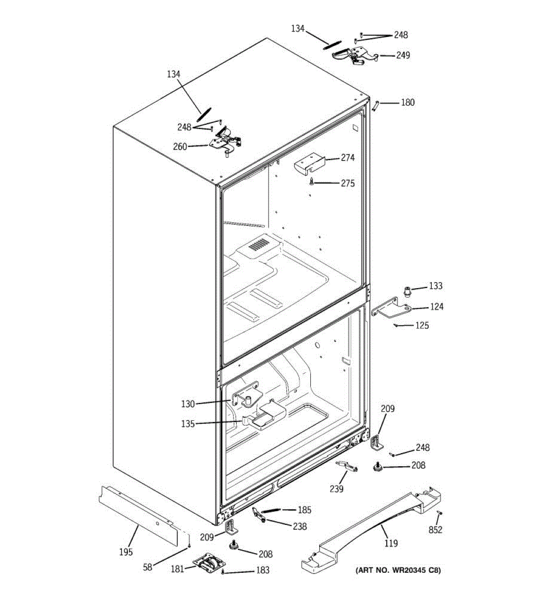 Replace the corner cap cover on your refrigerator. This plastic cover protects and finishes the corner edge. Order a new one if cracked or missing.